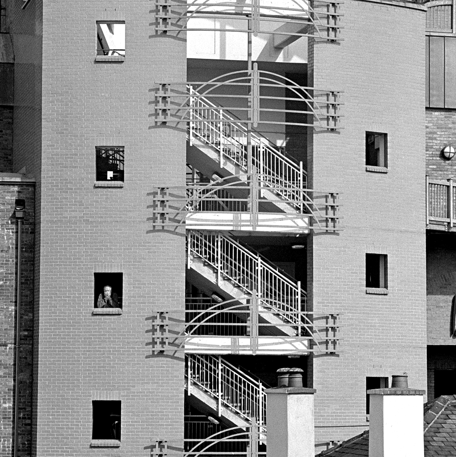 Great patterns and patience to catch the guy looking out the window.