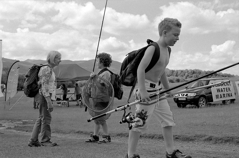 Two boys returning from fishing on Derwent Water.